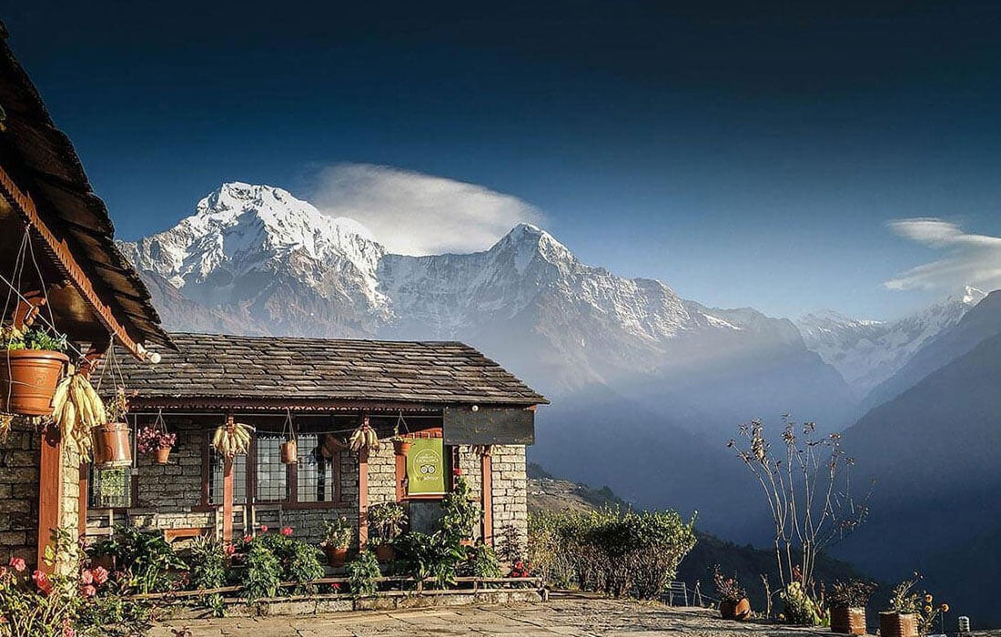 Ghorepani is a charming village situated in the Myagdi District, within the Dhaulagiri Zone of northern-central Nepal. It is about 17 kilometers away from the district capital, Beni, and sits at an elevation of approximately 2874 meters (9429 feet). The village is located in the Annapurna Conservation Area, so a national park permit is required to visit. Ghorepani has several "guest houses" that offer accommodation and meals to mountain trekkers. Many trekkers choose to spend the night here before embarking on a pre-dawn hike to the nearby Poon Hill (3210 meters/10531 feet) to witness the sunrise. The name "Ghorepani" comes from the Nepali words "pani" (water) and "ghora" (horse), as it used to be a resting place for ancient traders' horses, who found water here. With the construction of new roads, the trade route through Ghorepani became obsolete, and tourism has become the primary source of income for the villagers. Ghorepani is an important stop on a major trail connecting various other villages and the Annapurna Base Camp. From the Southeast, it can be reached on foot from Birethanti in around 10 hours, but many trekkers prefer to split the journey over two days due to the steep trail, altitude gain, and the breathtaking natural beauty. From the Northwest direction, Ghorepani is reachable in about 8-10 hours, starting from Tatopani and passing through the villages of Shikha, Dana, and Chitre.